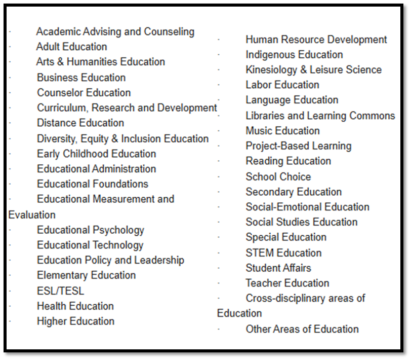 Though papers on All Areas of Education are Invited, however, some suggested are have been mentioned as follows (See the Box)